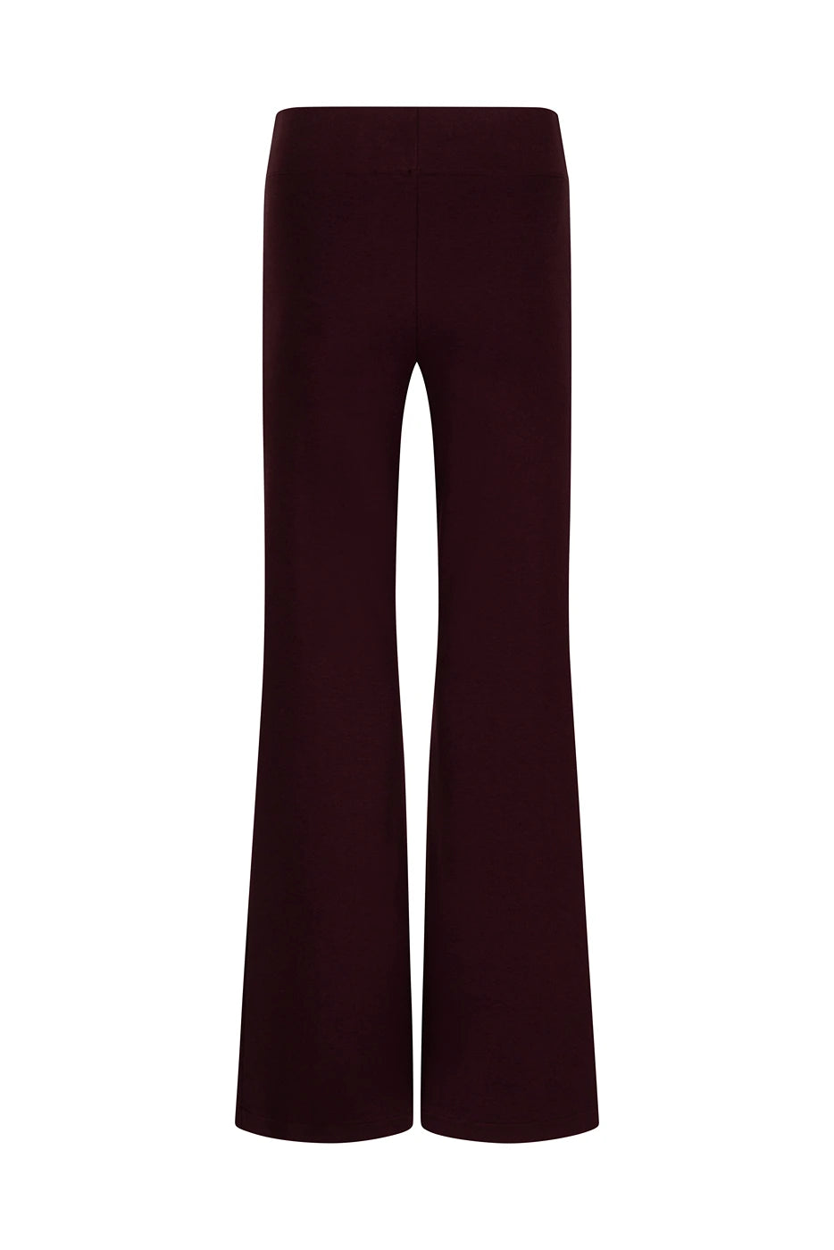 Cayha Duurzame Flared Yogabroek in de rode kleur Fig is een stijlvolle yoga broek met hoge tailleband en elegante flared pijpen. De zachte lyocell-mix biedt ademend comfort en stretch. Perfect voor yoga, pilates of casual wear.