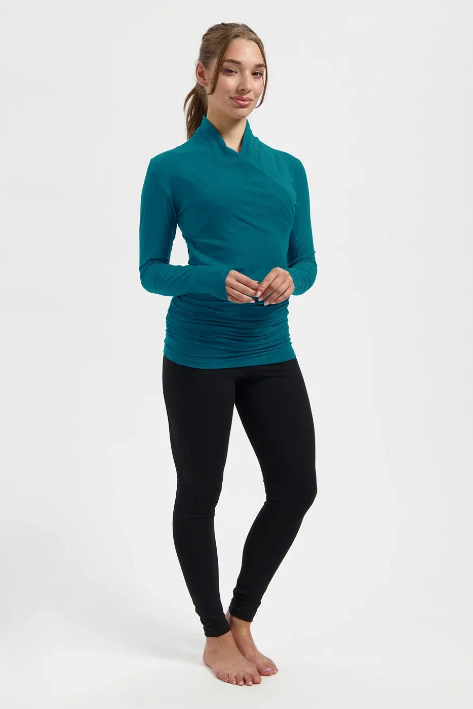 De Good Karma Duurzame Yoga Longsleeve is een extra lange yoga top voor dames met geplooide zijkanten en lange mouwen. Door de lengte draag je deze top ook als tuniek, ideaal voor extra bedekking tijdens je yoga practice. De soepele, ademende stof biedt optimale bewegingsvrijheid en comfort. Een stijlvolle en duurzame keuze voor op én naast de mat.