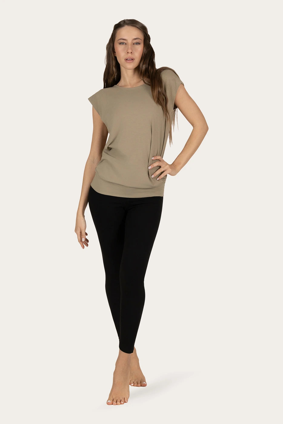 Het Asana relaxed-fit yoga shirt heeft een losse pasvorm en korte mouwen. Door de zachte heupband blijft de dames yoga tee goed zitten en blijven je buik en onderrug lekker warm tijdens je practice. De zachte stof van bamboe en biologisch katoen is van nature dry-fit en anti-bacterieel. Zo blijf je langer fris en droog tijdens je practice.