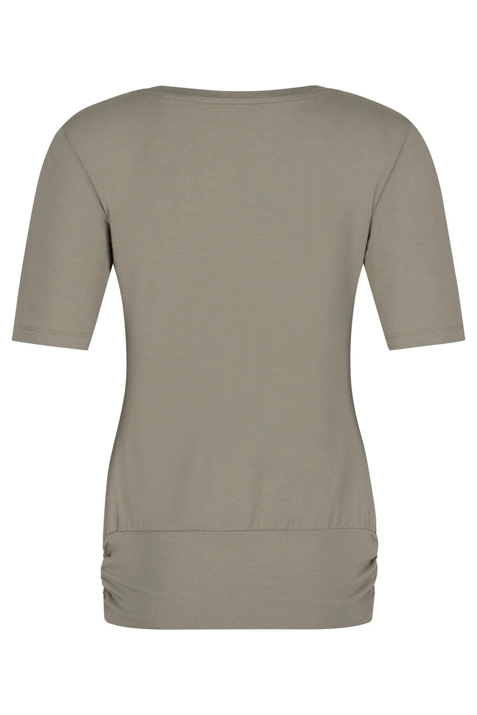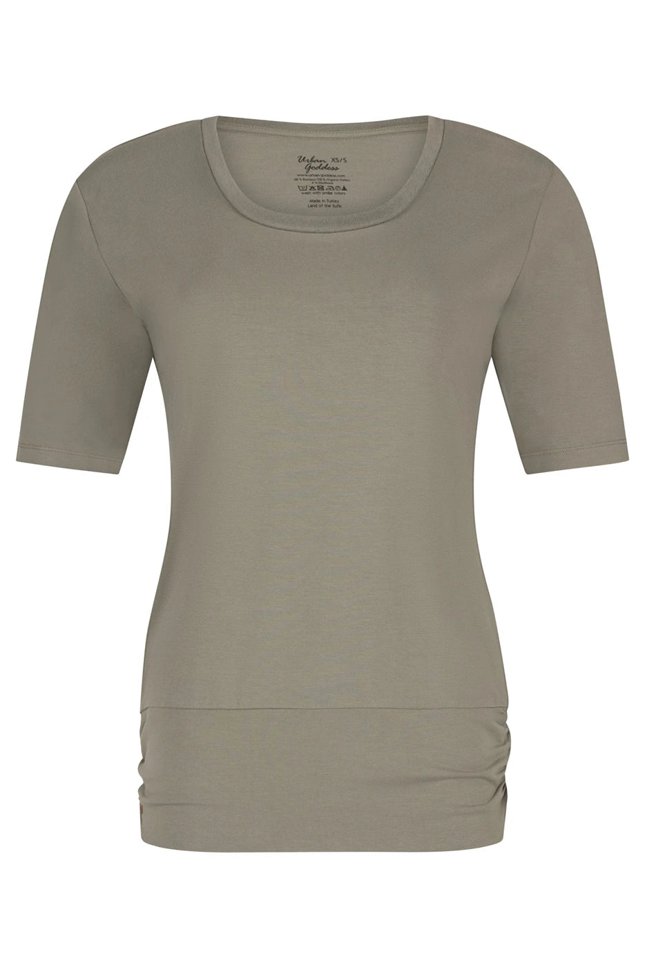 De Kami Dry-Fit Yoga T-shirt in Smokey Quartz is een comfy en stijlvol yoga shirt dat met je meebeweegt in elke pose. Dankzij de aangesloten heupband blijft het shirt goed zitten. De zachte stof van bamboe en biologisch katoen voelt licht en ademend aan op je huid. Perfect voor yoga, pilates of om gewoon in te loungen.