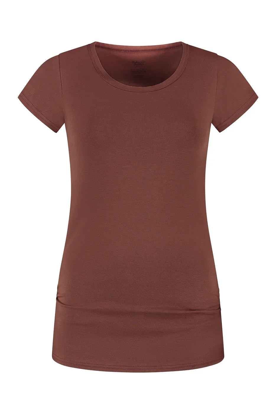 De Zefira Yoga Tee in Marron is een comfy basic die je steeds opnieuw uit de kast pakt. Gemaakt van zacht biologisch katoen met een vleugje lycra voor fijne stretch en bewegingsvrijheid. De subtiele plooien aan de zijkanten geven een losse, flatterende pasvorm. Perfect voor yoga, loungen of gewoon een mindful moment voor jezelf.