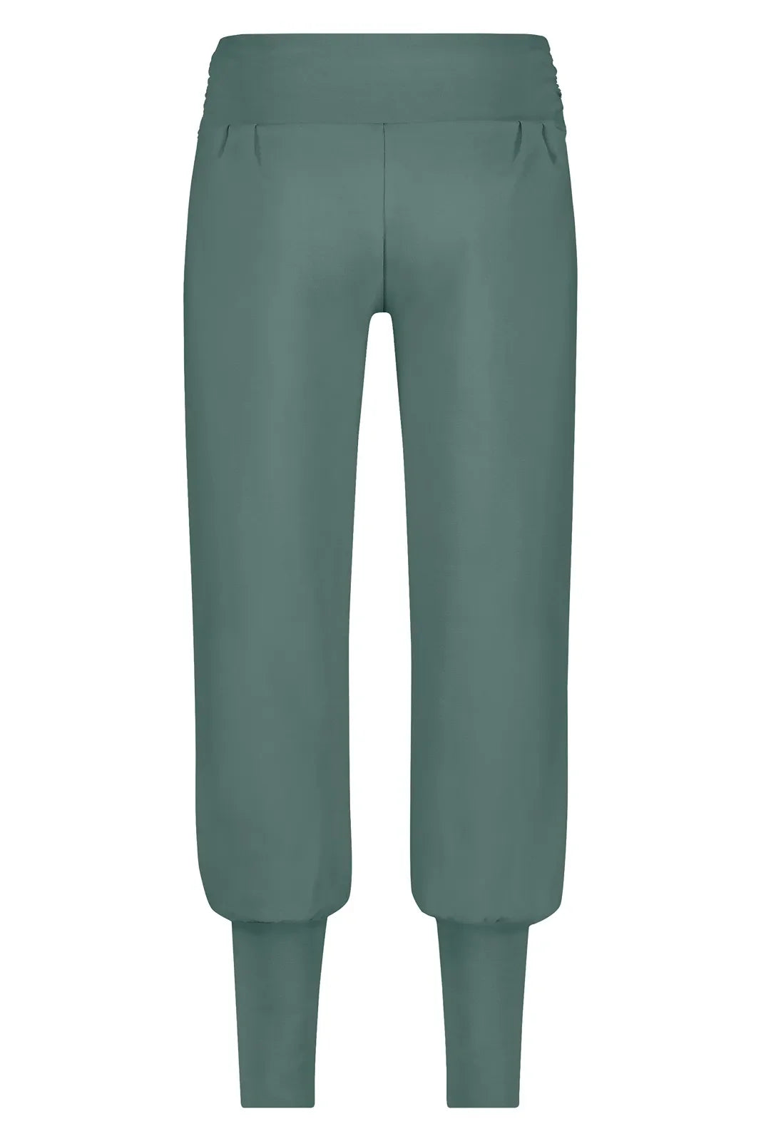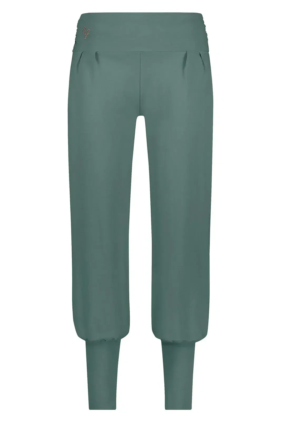 Modellgröße: Das Model ist 1,80m groß und trägt die weite Yoga Haremshose Dakini in Größe S.