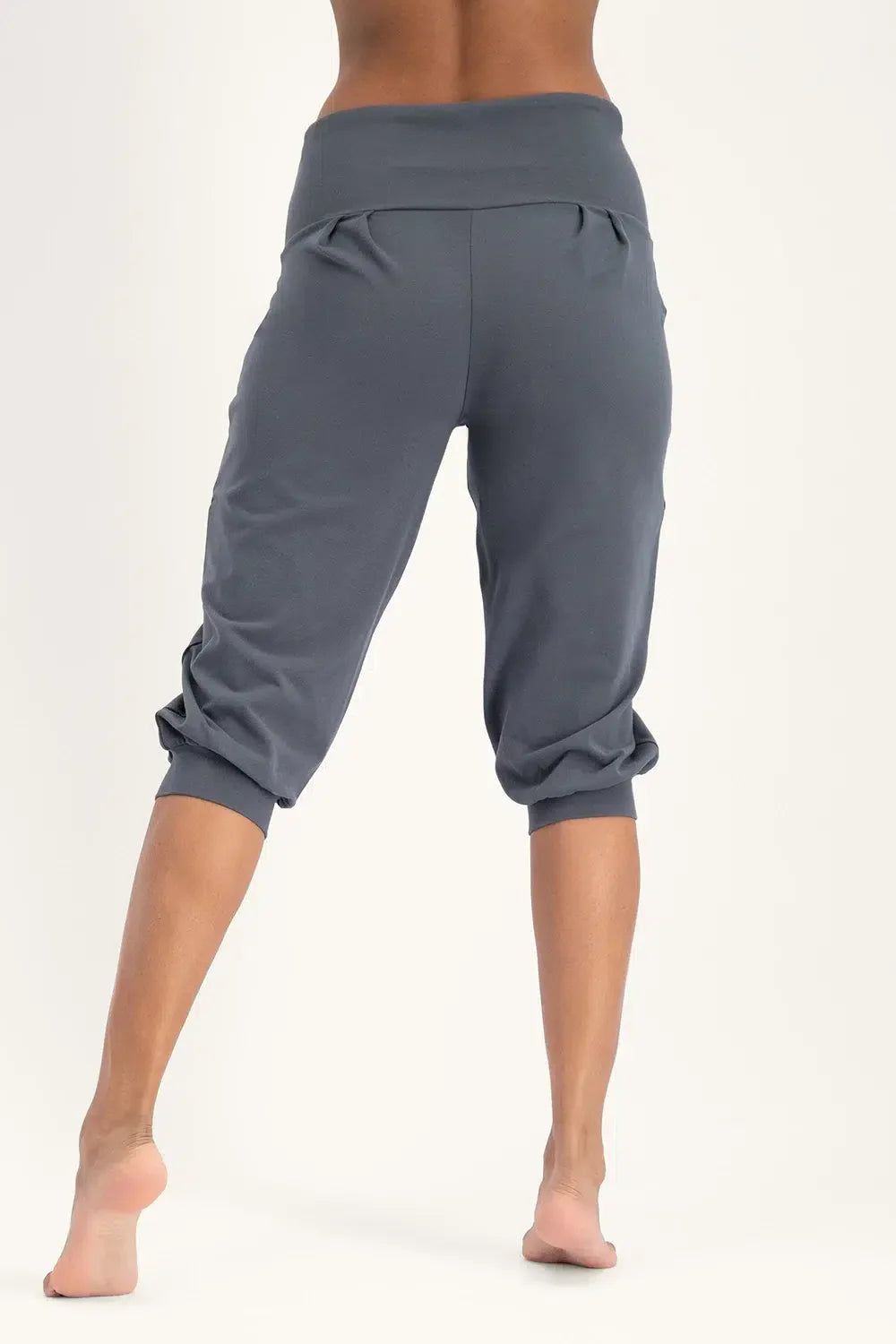 Modellgröße: Das Model ist 1,70m groß und trägt die Sukha Kurze Yoga-Haremshose Größe S.