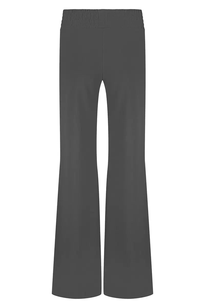 The Flow extra-wide yoga pants are trendy yoga pants with loose-fitting legs. The loose yoga pants have a mid-waist waistband with a smocked fabric. The fabric-mix of bamboo and organic cotton makes this a soft, dry-fit and antibacterial yoga pants.