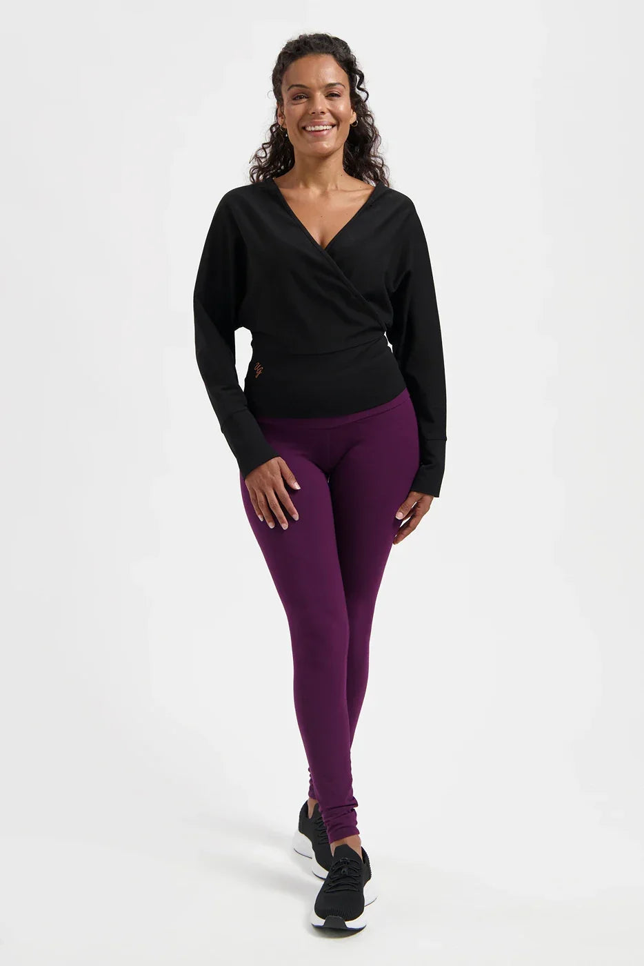 Our Ala Yoga Longsleeve is a soft, breathable wrap-style top with long batwing sleeves and elegant crossover details. Made from organic cotton and lycra. Perfect for layering before or after yoga. Feminine, comfy & consciously made.