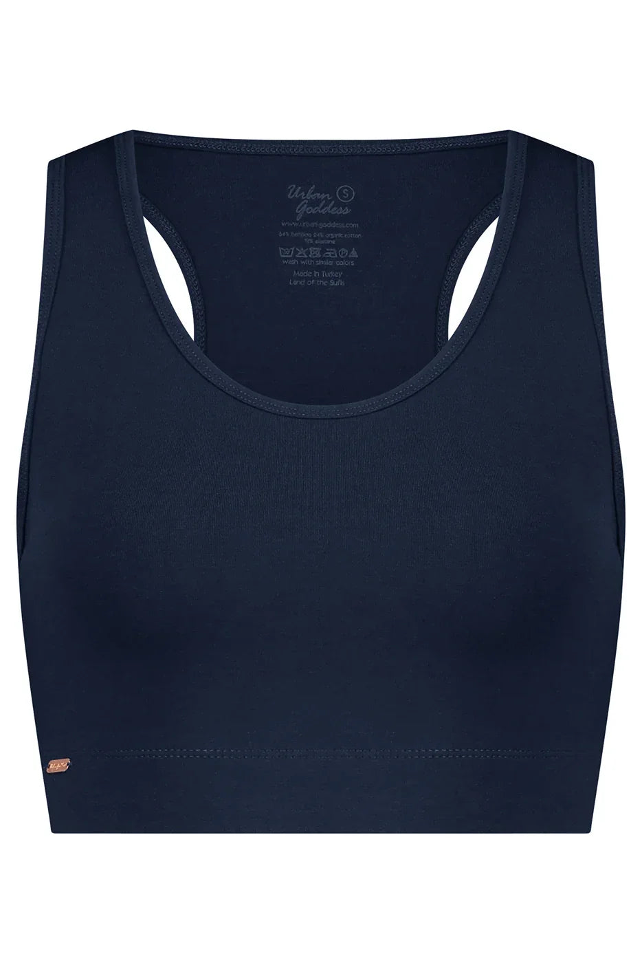 The Surya Pilates Yoga Sports Bra is a comfortable basic made of breathable bamboo and organic cotton. Perfect for pilates, gentle yoga or low-impact workouts. This sturdy sports bra without underwires offers low to medium support and stays in place thanks to the high sides. Wearable as a bra or sports top and suitable for different cup sizes.