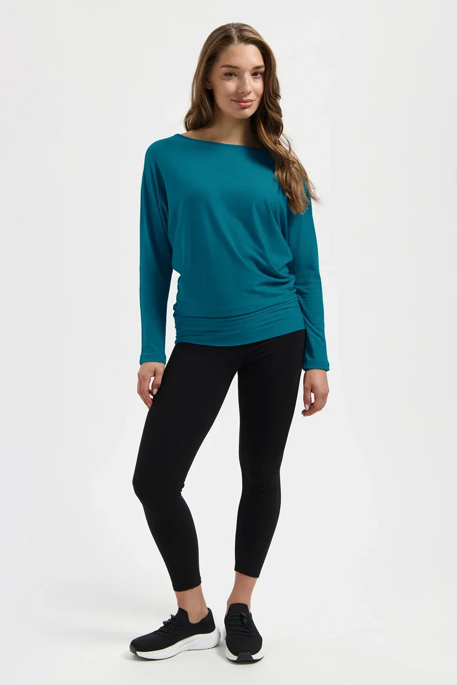 The Budhi Bamboo Yoga Longsleeve is a lightweight, breathable long-sleeve yoga top with a loose-fit silhouette. Made from bamboo, organic cotton, and a touch of lycra for added stretch. Perfect as a layering piece during your practice, meditation, or simply for lounging. Sustainable, comfortable, and stylish.
