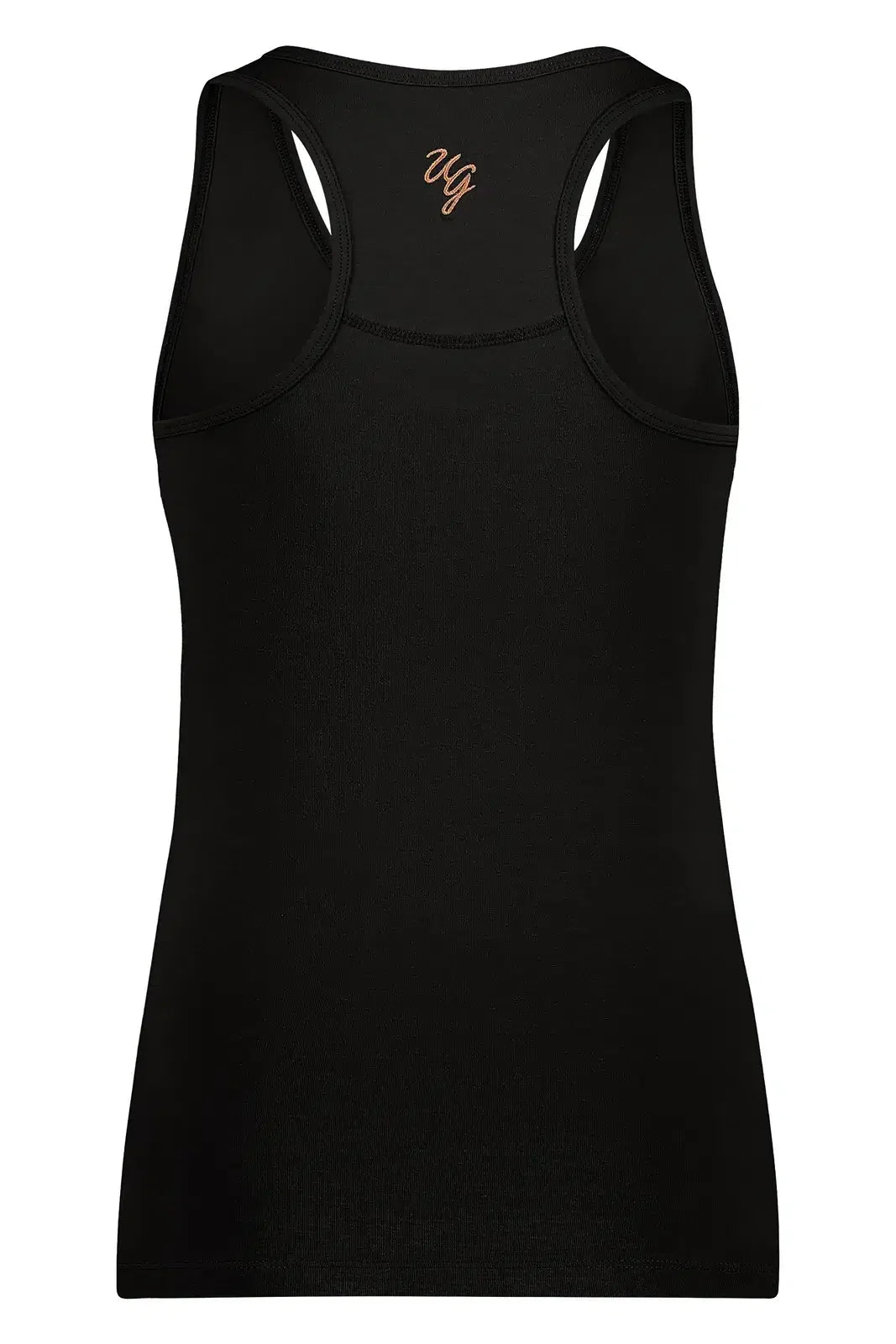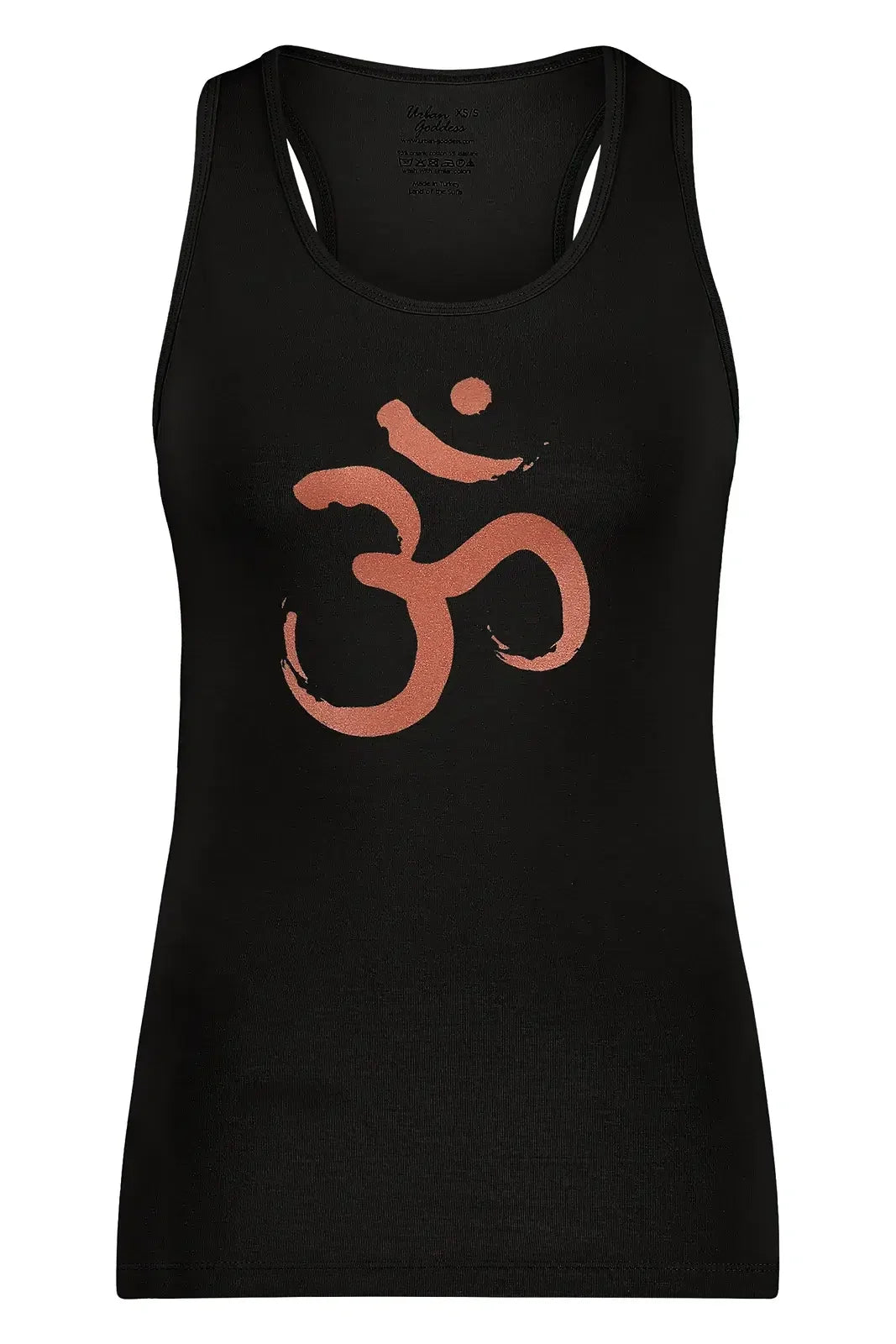 This trendy yoga tank with OM print can be worn endlessly and combined with all your favourite yoga clothes and causal wear. This essential yoga tank with OM print is certainly a great match for your yoga class, whether in a studio or at home. But also off the mat, this top is a real eye-catcher thanks to the beautiful OM print in bronze. Get ready to shine!