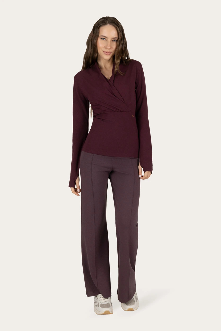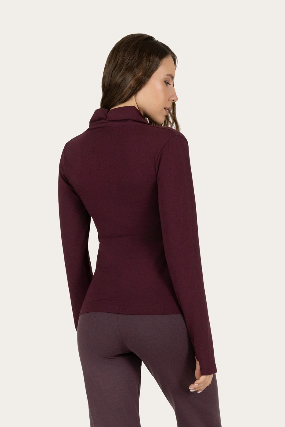 The warm fig tone and elegant fit make this top just as suitable for your yoga practice as for everyday wear. Pair it with your favorite high-waisted leggings or loungewear for a mindful, stylish look that supports conscious living and movement.