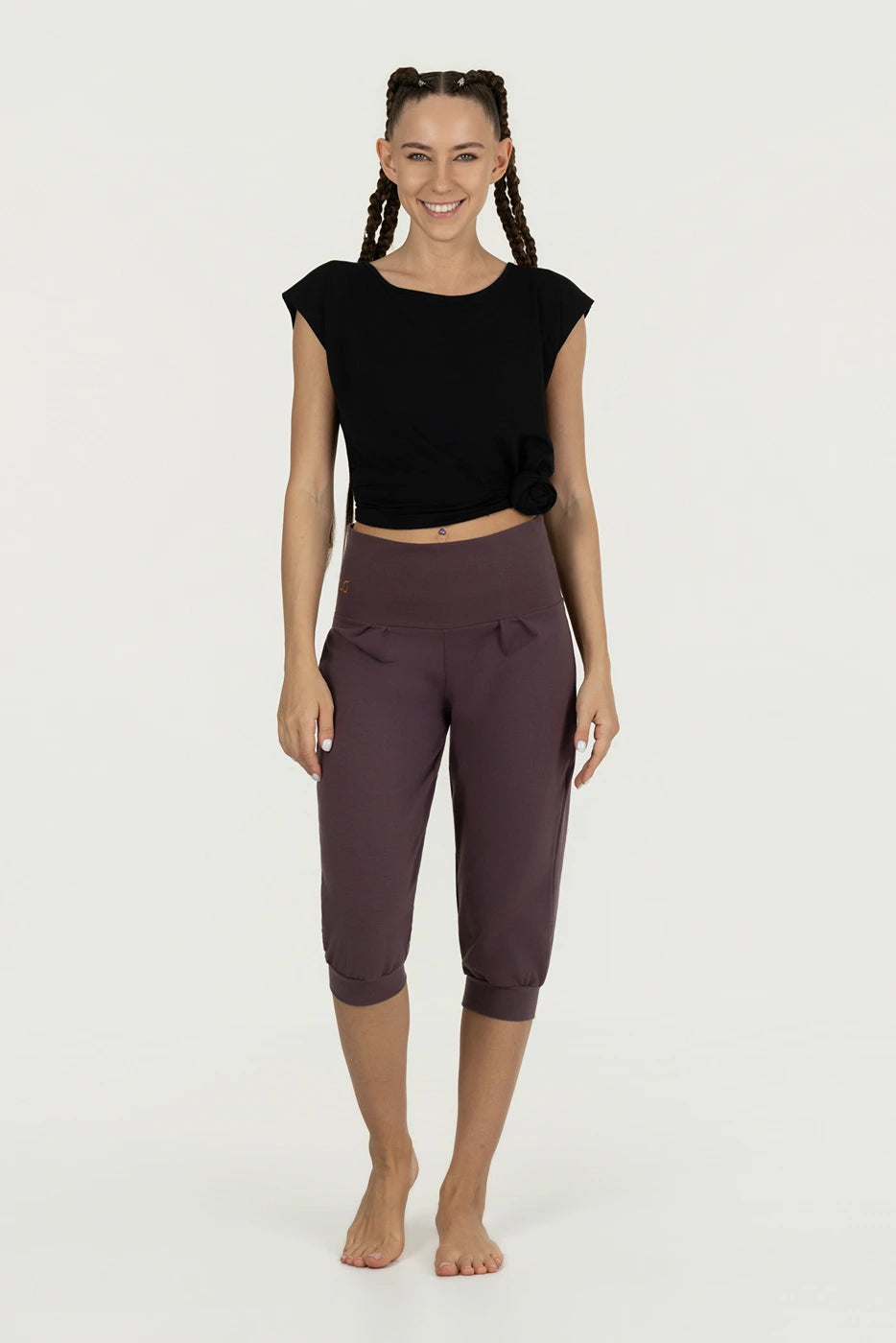 De Sukha Korte Yogabroek in Berry is en perfecte broek voor yogaoefeningen. Het heeft een relaxte pasvorm voor optimale bewegingsvrijheid. Gemaakt van zacht biologisch katoen, is deze ademende yogabroek perfect voor yoga, meditatie en ontspannen momenten. De hoge taille met verstelbaar trekkoord zorgt voor extra comfort, terwijl de cuffs bij de kuiten ervoor zorgen dat de broek goed blijft zitten tijdens verschillende yogahoudingen. De warme Berry kleur geeft deze duurzame korte yogabroek een stijlvolle en vrouwelijke look.